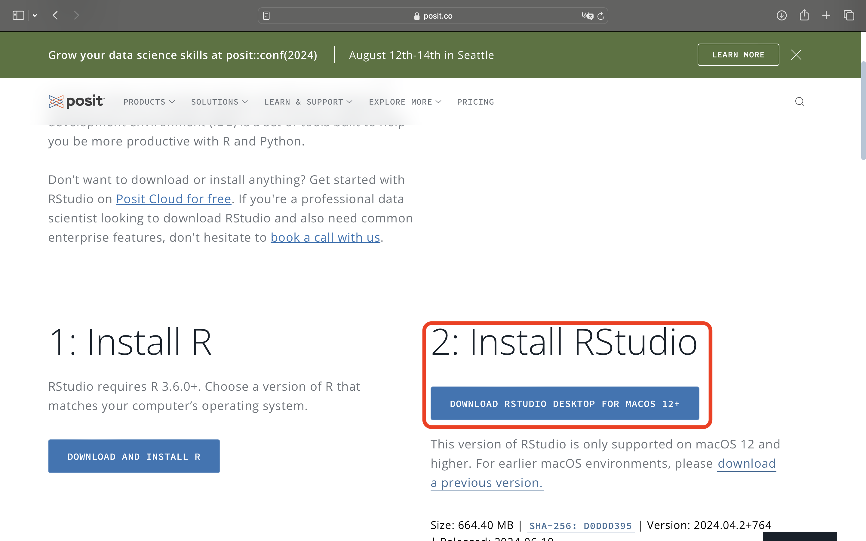 Para fazer o download do Rstudio acesse o site: https://posit.co/download/rstudio-desktop/
